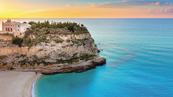 Tropea é um paraíso no alto de uma falésia com vista para o mar azul-turquesa da Calábria. Suas praias são de tirar o fôlego e o centrinho é cheio de charme, com ruelas, gelaterias e lojinhas locais. É famosa também pela cebola roxa doce, símbolo da região!